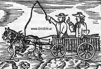 Rübezahl kommt zu einem Fuhrmanne, welcher nach Hirschberg zu fahren in Willens, bei deme er sich angegeben und umbs Fuhrlohn gedinget. Als sie aber kaum eine Viertelmeil Weg miteinander gefahren, wollen die Pferde nicht einen Schritt von der Stelle gehen; da ihn der Fuhrmann heißen absteigen, welches er zu tun sich geweigert, vorgebende, weil er hätte Geld gegeben, müßte er auch dafür fahren. Als aber der Fuhrmann mit Ungestüm auf ihn zugelaufen, in Willens, ihn herabzureißen, hat er sich furchtsam gestellet und ist auf der andern Seite des Wagens geschwind heruntergesprungen. Hierauf haben zwar die Pferde ein zwölf Schritt den Wagen von dem alten Ort gerücket, aber bald wieder stille gehalten. Der Fuhrmann wird zornig, schlägt auf die Pferde immer los, bis Rübezahl machet, als wenn alle beide mitten voneinander springen. Worüber dem Fuhrmann so angst worden, daß er alsbald zurückgelaufen, seinem Wirte das Unglück angemeldet und gebeten, er möchte ihm doch seine Pferde so weit leihen, daß er den Wagen wieder zurückbringen und sich ein paar andere Pferde kaufen könnte. Wie nun der Wirt und andere Leute mehr (so es gehöret) mit dem Fuhrmanne hinauskommen, stehen die zersprungenen Pferde wieder am Wagen ganz ohne Schaden und Mängel, aber der Wagen ganz abgeladen, daß der Fuhrmann die Ware mit großer Mühe und Beschwerd hat müssen auf dem Felde aufladen, und ist endlich mit seinen eigenen Pferden an bestimmten Ort gelanget.