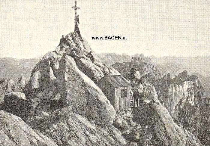 *) Das Kreuz wurde im Sommer 1883 von Freunden des Kaisergebirges aus München mit vieler Mühe und nicht geringen Kosten aufgestellt. Im Sommer 1905 wurde das durch Blitzschlag zerstörte Kreuz durch Herrn Jos. Scheurer-München unter vielen Mühen bei heftigem Schneetreiben neuerlich errichtet.