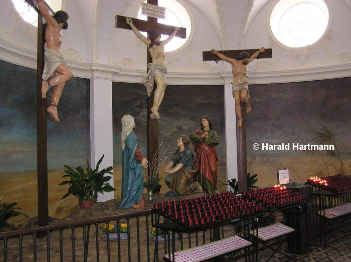 er Kalvarienberg in Hernals wurde auf Initiative des Jesuitenpaters Karl Mussard in einem ehemaligen Zentrum der evangelischen Konfession angelegt. Der Weg hatte - nach Jerusalemer Tradition - sieben Stationen, die sich im Stephansdom, auf der Alserstraße und in Hernals befanden, wo eine Grabkapelle errichtet wurde. Zum Kirchweihfest 1639 fand die erste pompöse Prozession statt, an der Kaiser und Hofstaat teilnahmen.